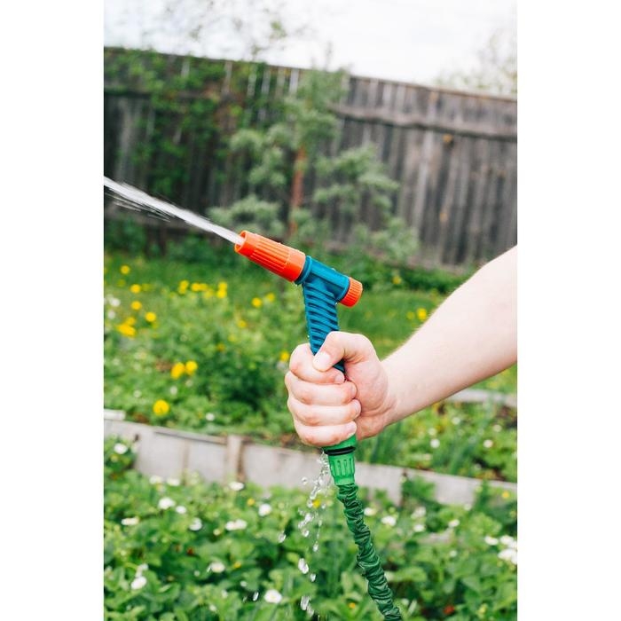 Интенсивность напора можно регулировать поворотным механизмом, а эргономичная форма насадки сделает полив более комфортным!