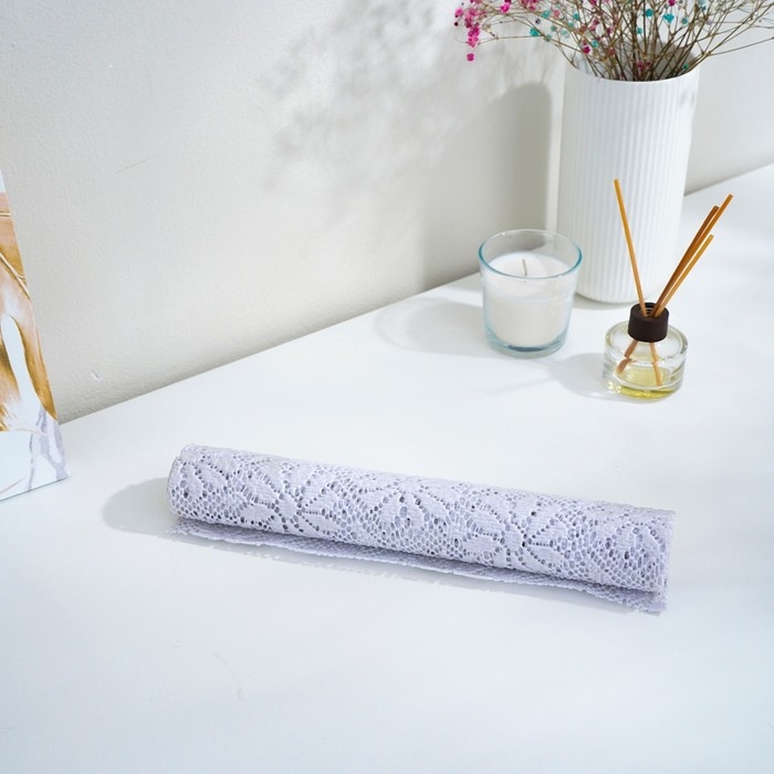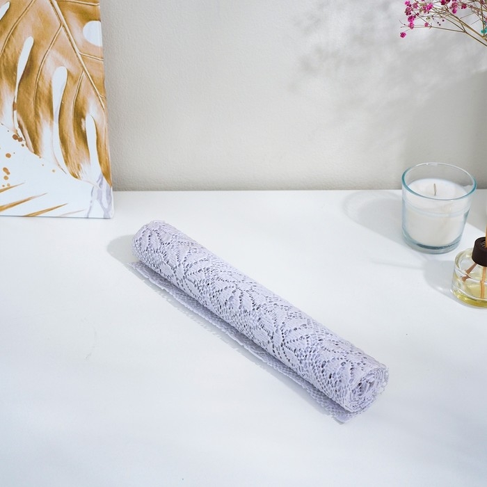 Коврик противоскользящий Доляна «Цветы», 30×100 см, цвет белый