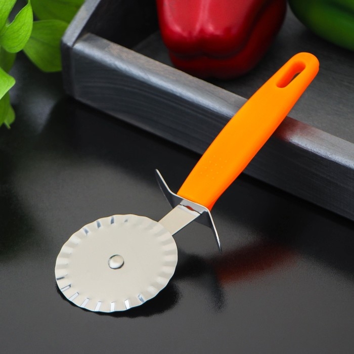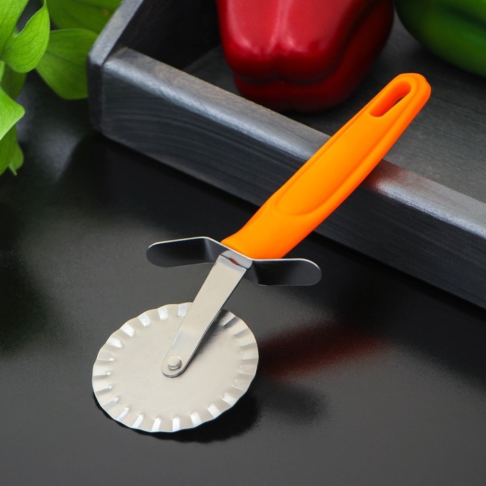 Нож для пиццы и теста Доляна «Оранж», 19 см, ребристый, цвет оранжевый в форме вращающегося колеса замечательно подходит для максимально комфортного деления "средиземноморской лепешки" на равные доли.