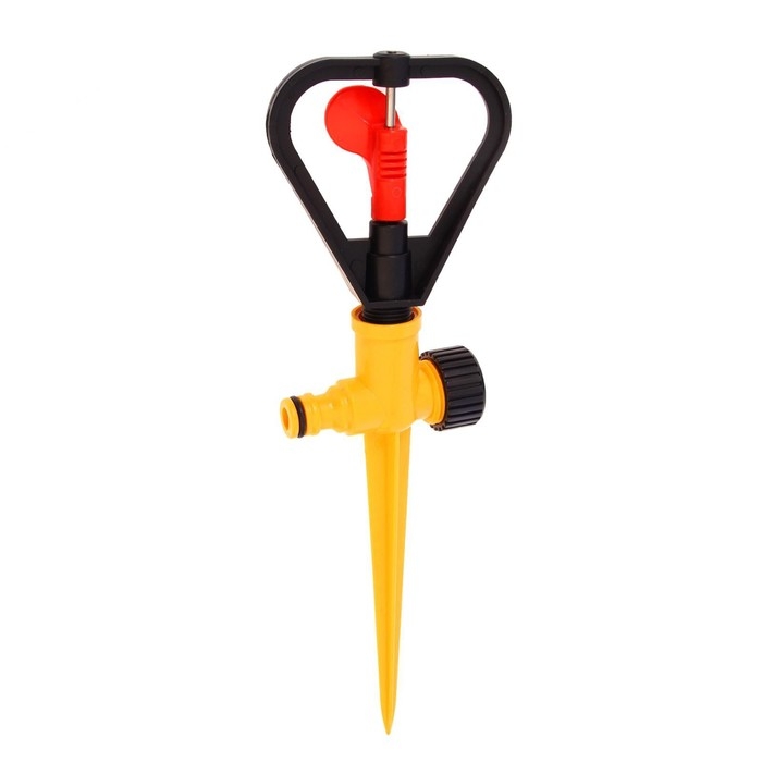 Под давлением воды распыляющая головка начинает вращаться и осуществлять полив.