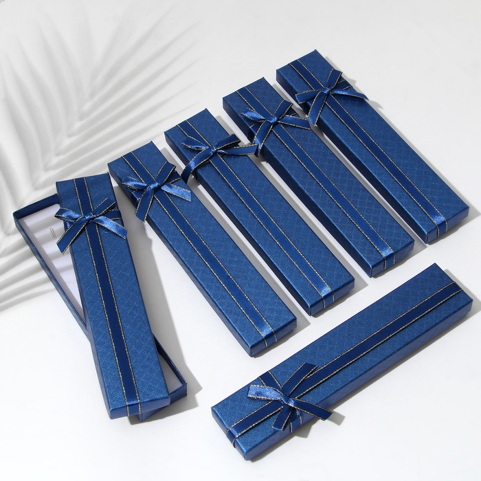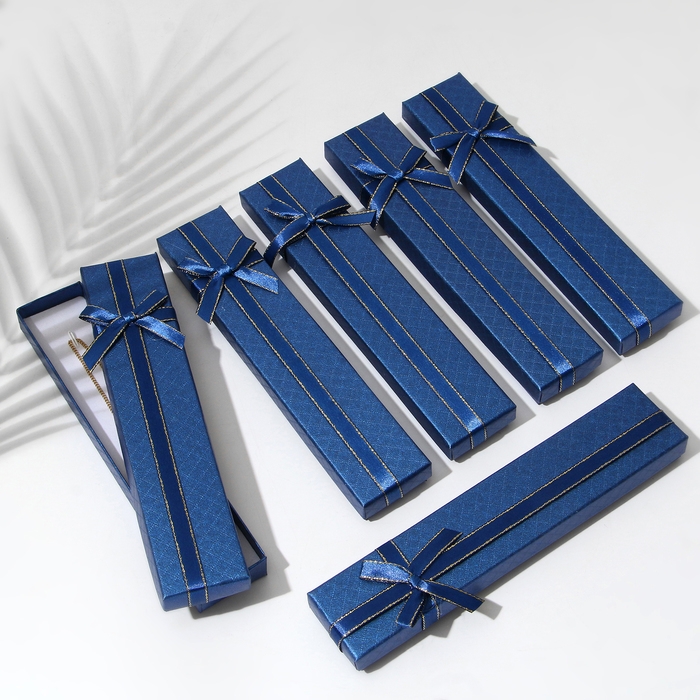 Коробочка подарочная под браслет/цепочку/часы «Бантик» стёганый принт, 21×4, цвет синий
