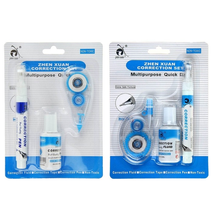 Корректор-лента Zhen Xuan 6 м х 5 мм, с корректором 18 мл, с корректирующим карандашом 7 мл, металлический наконечник, на основе растворителя