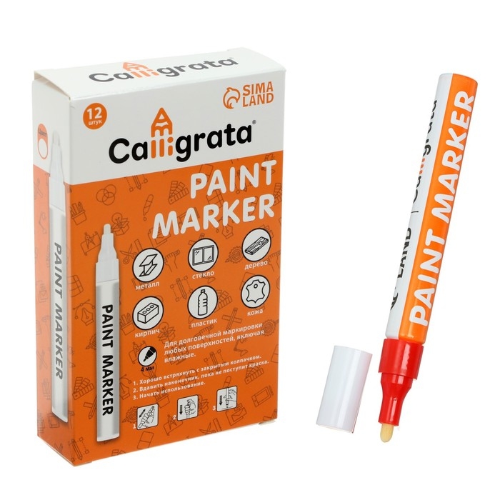 Маркер-краска великолепно пишет по любому типу поверхности: бумаге, дереву, пластику, металлу, натуральному и искусственному камню, стеклу. Морозоустойчив, не выгорает на солнце. Маркер может писать по горячей (до 130 градусов) или загрязнённой, в том числе и маслами, поверхности. При этом исключаются растекания, неровности и преждевременное пересыхание.