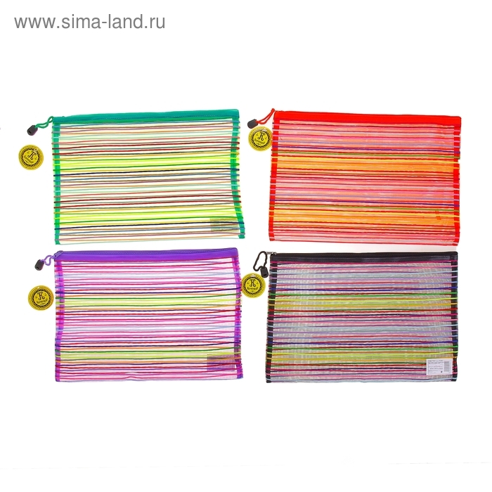 Папка-конверт "Полоска - сеточка" А4, на молнии, 23 х 34 см, МИКС