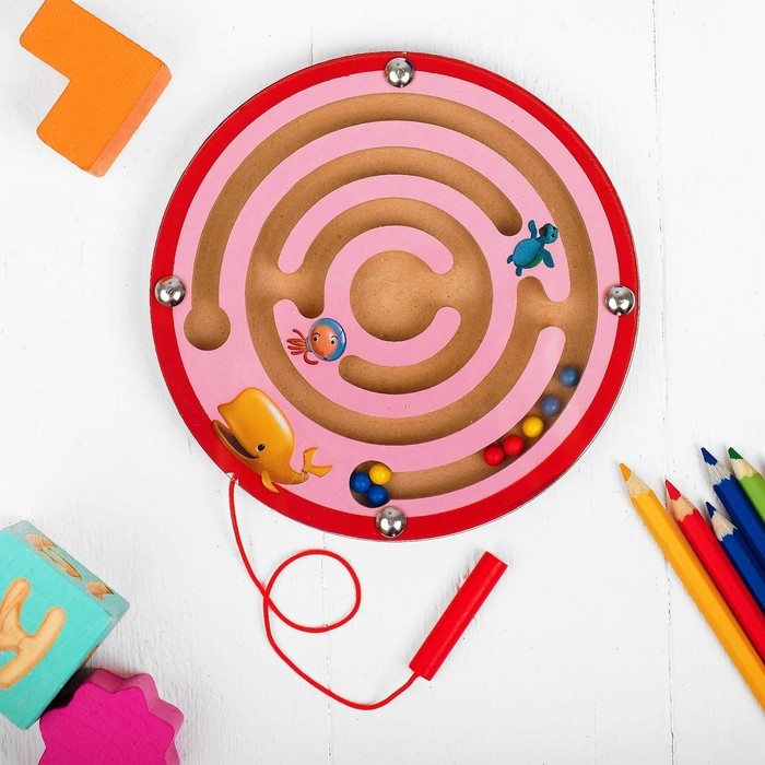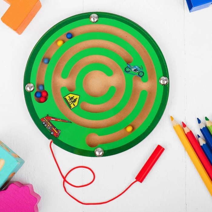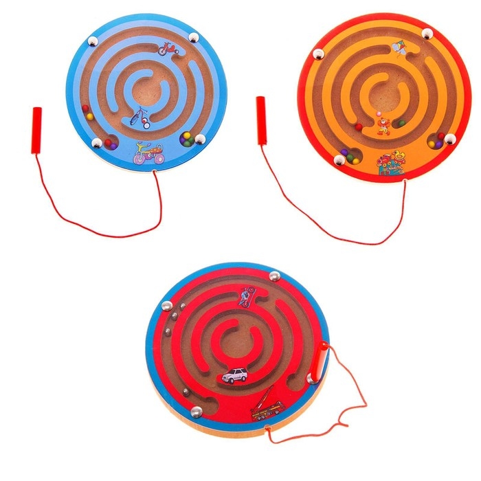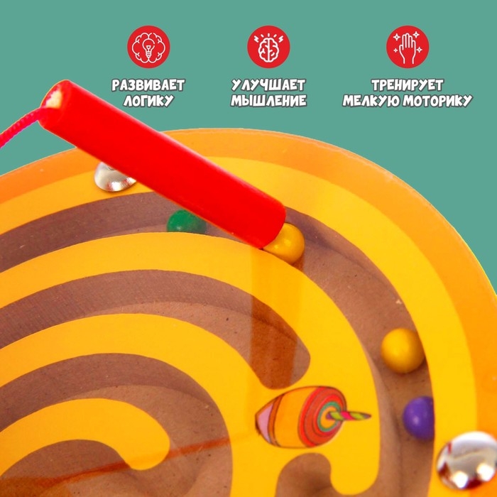 Порадуйте ребёнка захватывающей логической игрушкой! Суть магнитного лабиринта в том, чтобы довести каждый шарик в конечную точку маршрута с помощью специальной ручки на шнурке.