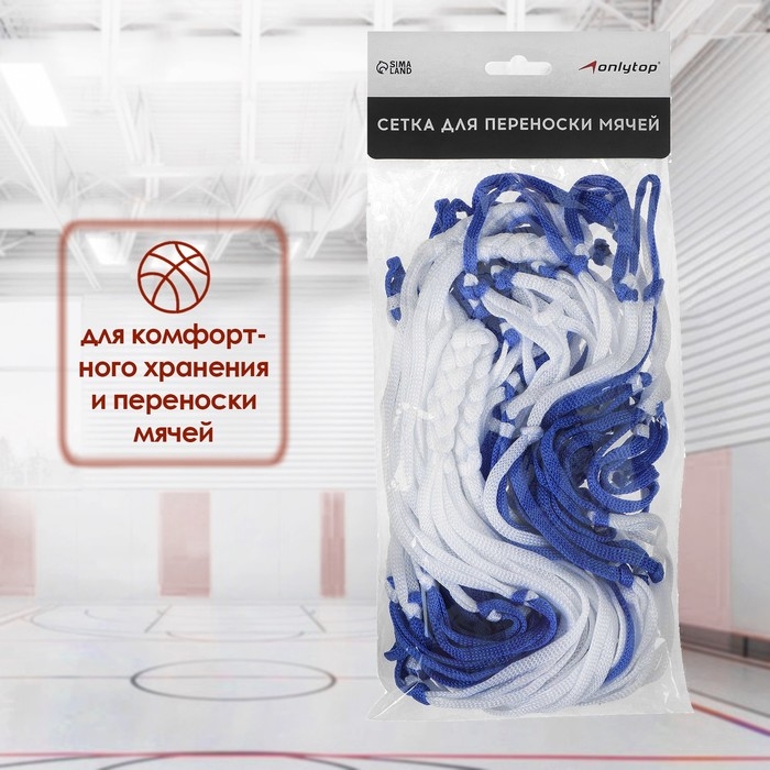 Сетка для переноски мячей ONLYTOP, на 10 мячей, нить 2 мм, цвета МИКС