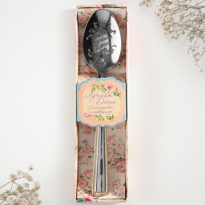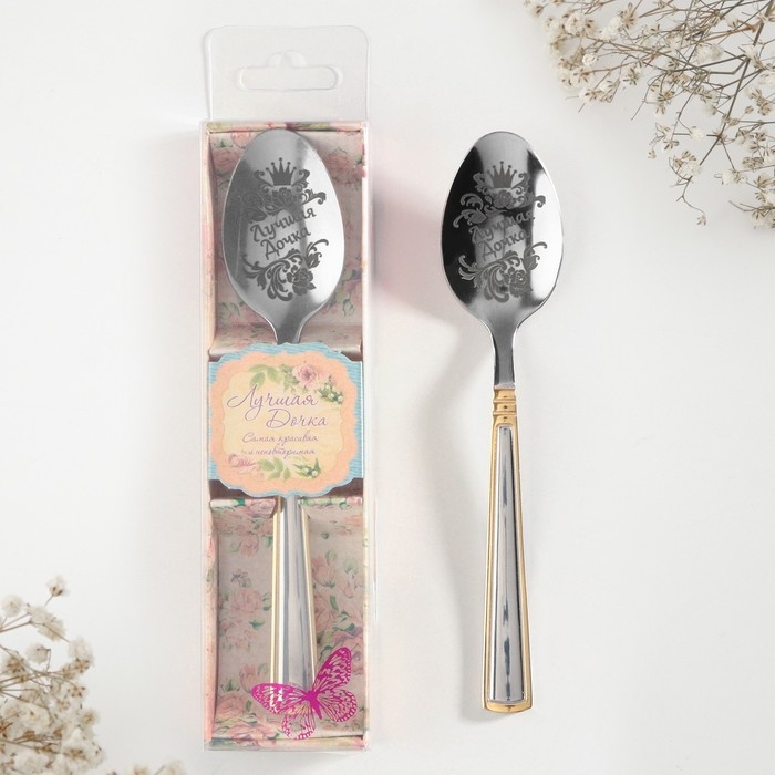 Ложка чайная с гравировкой «Лучшая дочка», в подарочной коробке, 3 х 14 см.