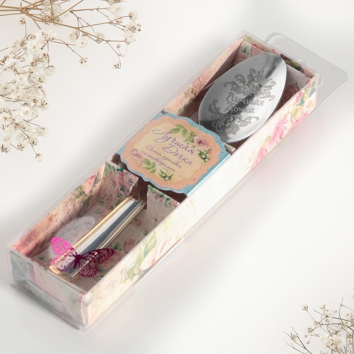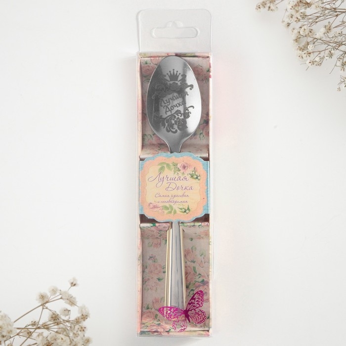 Ложка чайная с гравировкой «Лучшая дочка», в подарочной коробке, 3 х 14 см. изготовлена из нержавеющий стали, узор нанесен на черпак при помощи лазерной гравировки. Таким образом, изделие сохранит свой первозданный вид долгое время, а теплые слова не сотрутся и будут радовать адресата день за днем.