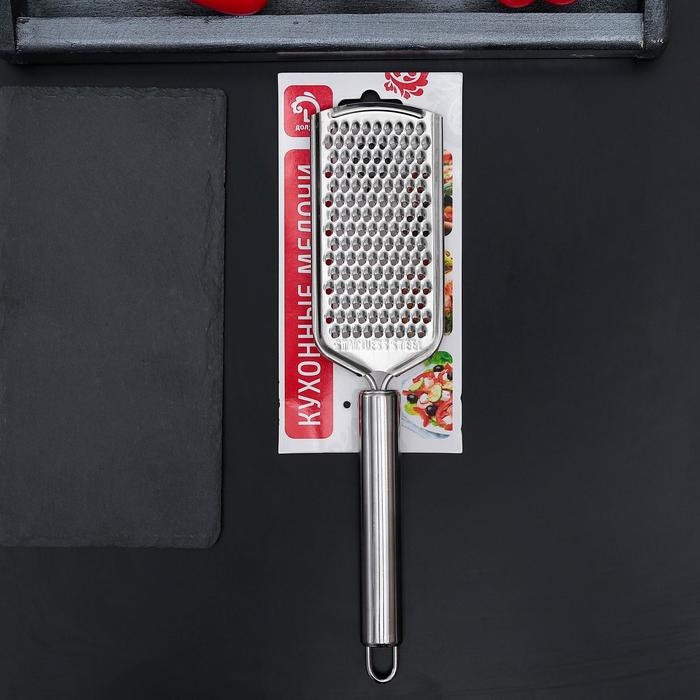 Тёрка для сыра Доляна «Металлик», 24×6 см, мелкая, с ручкой, цвет серебристый