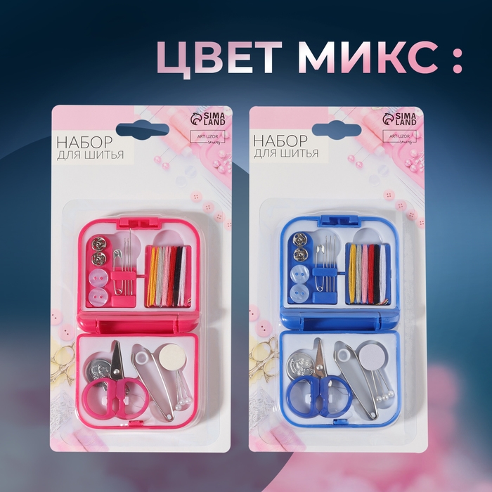 Швейный набор, 22 предмета, в блистере, 20 × 10,5 см, цвет МИКС