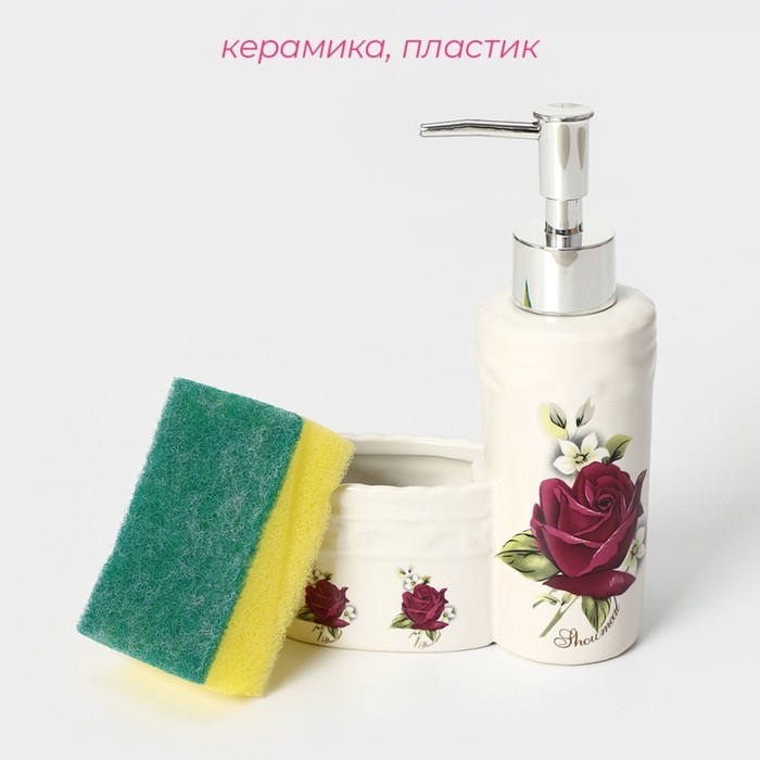 Дозатор для моющего средства с подставкой для губки Доляна «Роза», 200 мл