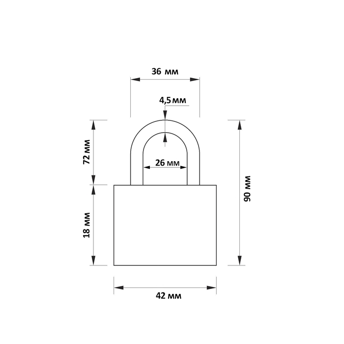Замок навесной, тип 1, 42х90 мм, 3 ключа