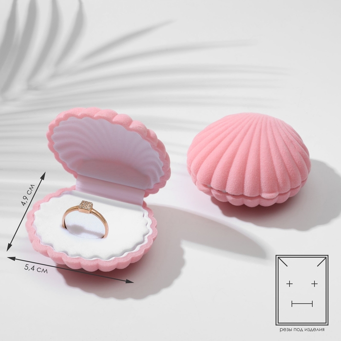 Футляр бархатный под серьги/кулон «Ракушка», 6×5,5 см, цвет розовый, вставка белая