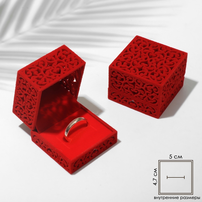 Футляр бархатный под кольцо «Кружево», 6×6, цвет красный