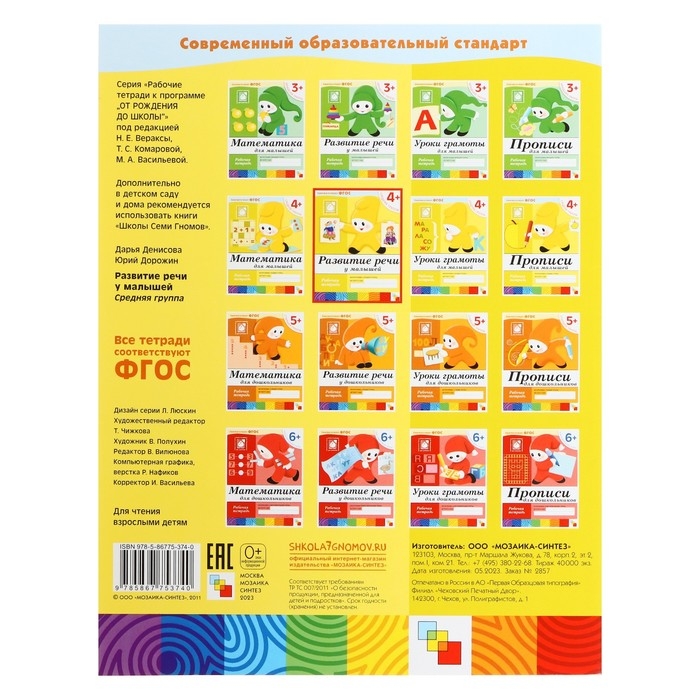 Рабочая тетрадь «Математика для малышей», средняя группа, Денисова Д., Дорожин Ю.