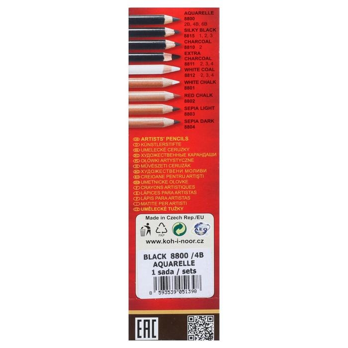 Карандаш художественный чернографитный акварельный 7.5 мм, Koh-I-Noor GIOCONDA 8800 4В, L=175 мм