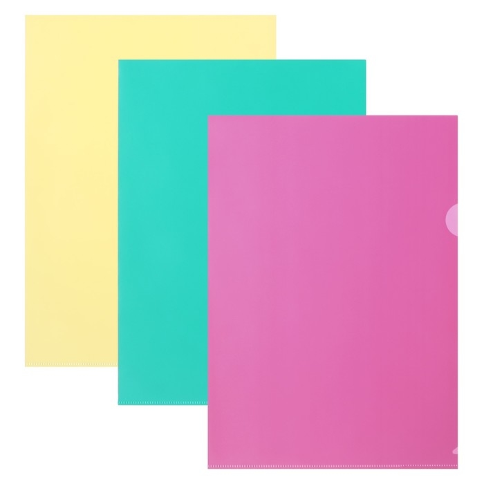 Набор папок-уголков А4, 180 мкм, Calligrata Pastel, полупрозрачные, 3 штуки, микс