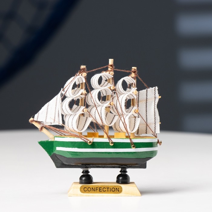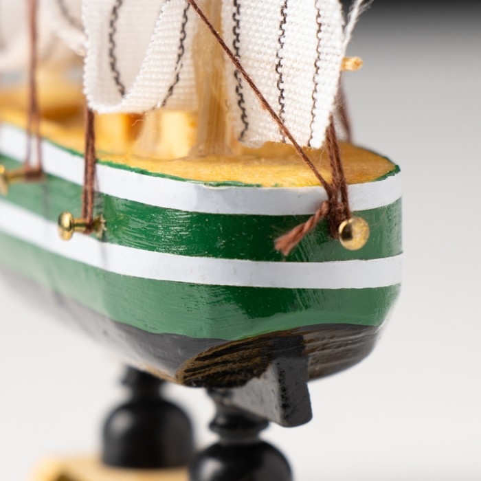 Корабль сувенирный малый «Клеймор», борта зелёные с белой полосой, паруса белые, 3×10×10 см принесет удачу своему обладателю