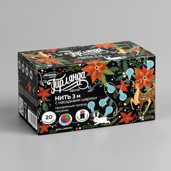 Гирлянда «Нить» 3 м с насадками «Шарики», IP20, прозрачная нить, 20 LED, батарейки AAх3 (нет в комплекте), свечение мульти