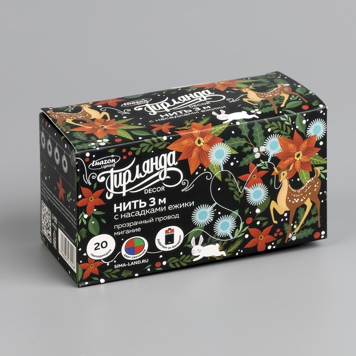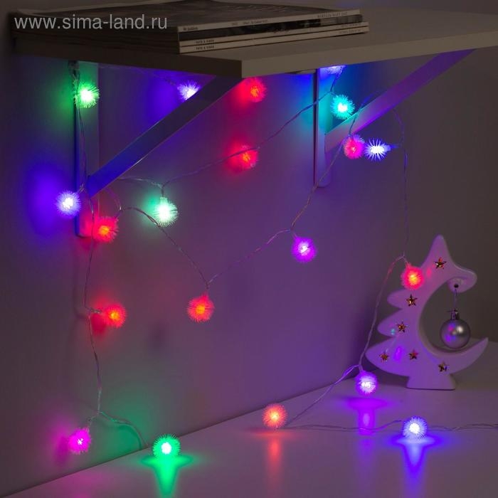Гирлянда «Нить» 3 м с насадками «Ёжики», IP20, прозрачная нить, 20 LED, батарейки AAх3 (нет в комплекте), свечение мульти
