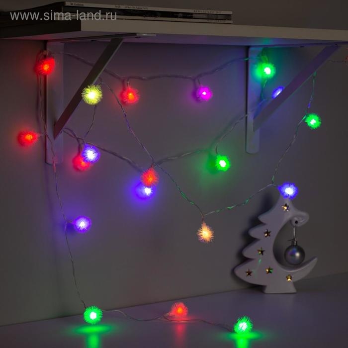 Гирлянда «Нить» 3 м с насадками «Шарики», IP20, прозрачная нить, 20 LED, батарейки AAх3 (нет в комплекте), свечение мульти
