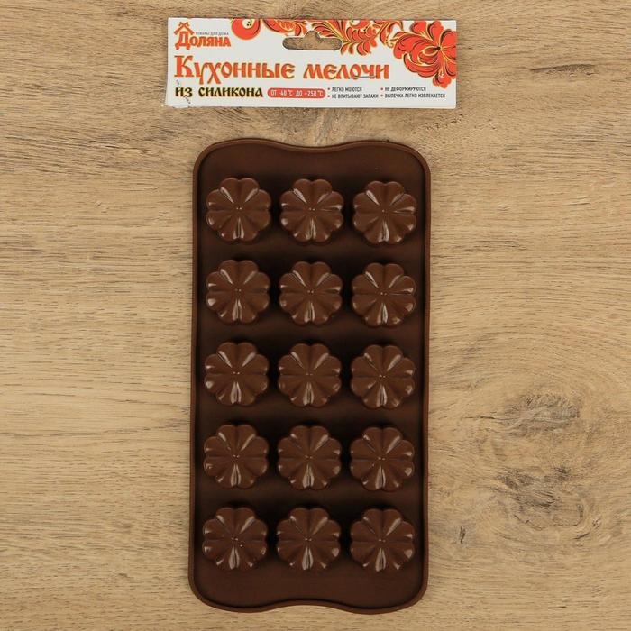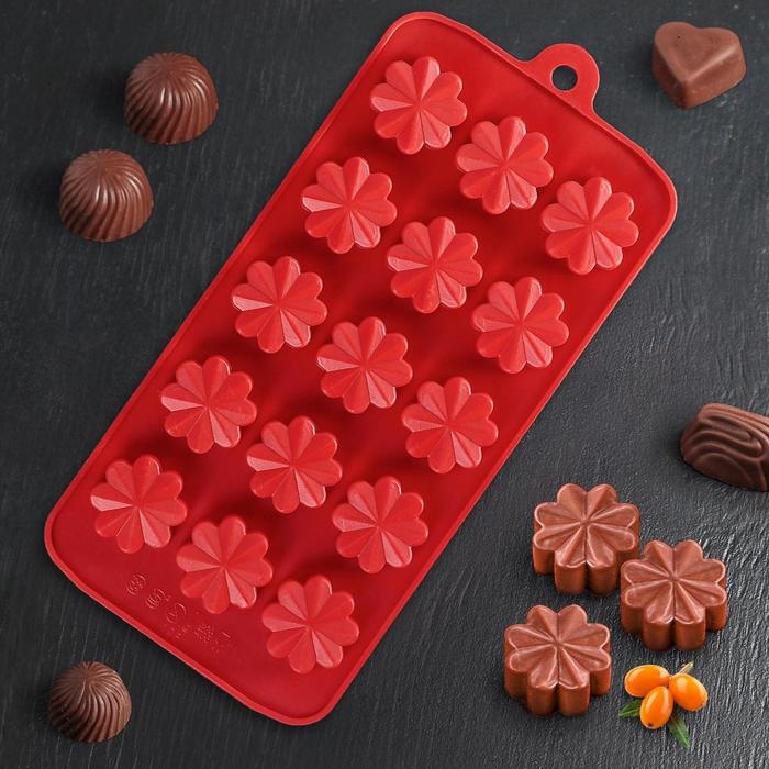 Форма для конфет и шоколада Доляна «Цветочки», силикон, 21×10×2 см, 15 ячеек, цвет МИКС