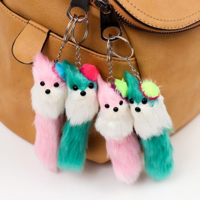 Пушистик на кольце "В радужной шляпке со стразой", МИКС