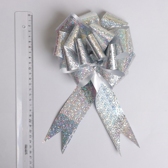 Бант-шар №5 голография, цвет серебряный