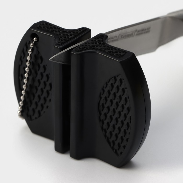Заточка для ножей Доляна, 7,5×6×2,5 см, с 2 отделениями для стальных и керамических ножей, МИКС