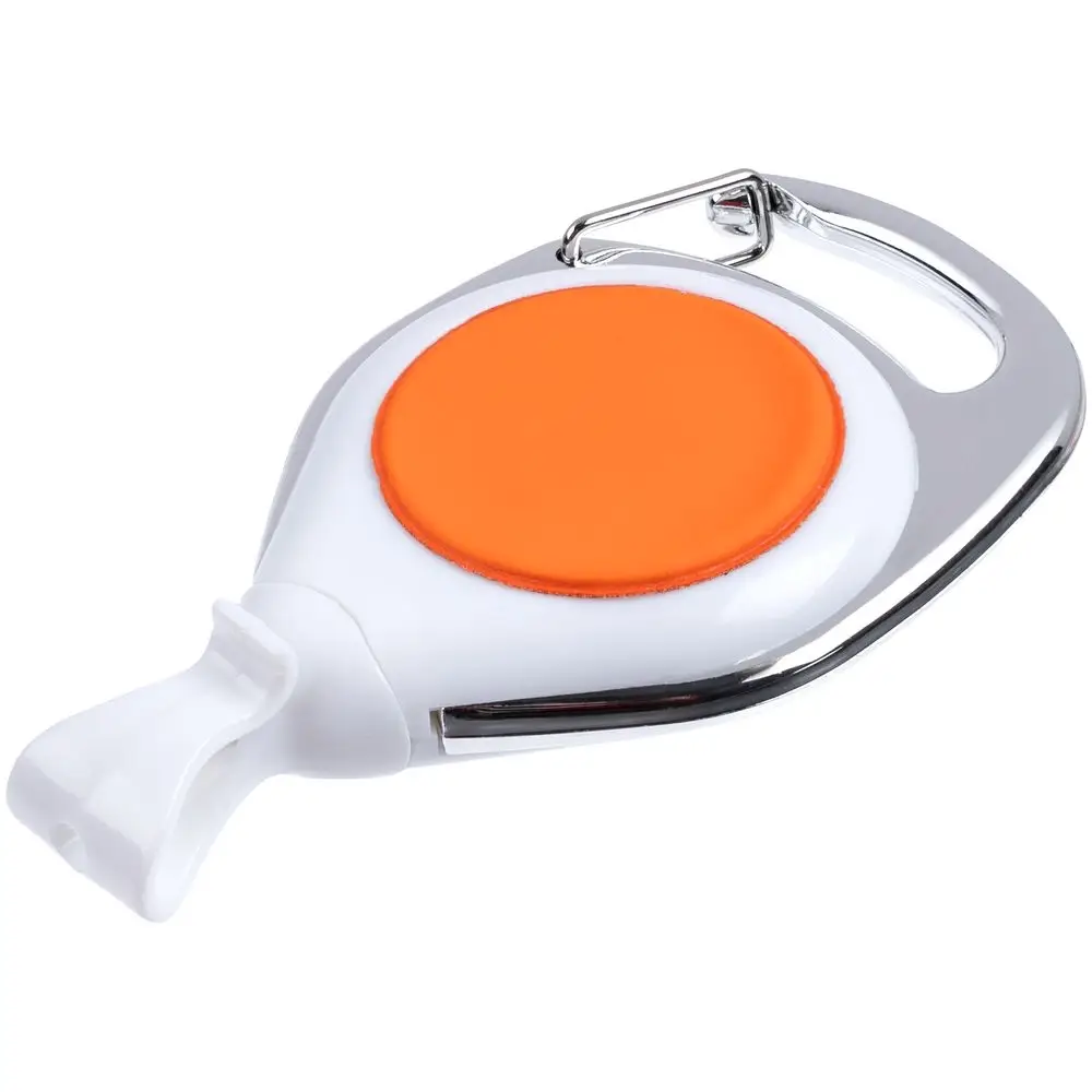Ретрактор крепится к одежде с помощью клипа или карабина, а с другой стороны на можно подвесить бейдж, пропуск или магнитную карту. В корпусе спрятан сворачивающийся шнур, который позволяет при необходимости демонстрировать содержимое держателя, не снимая его.