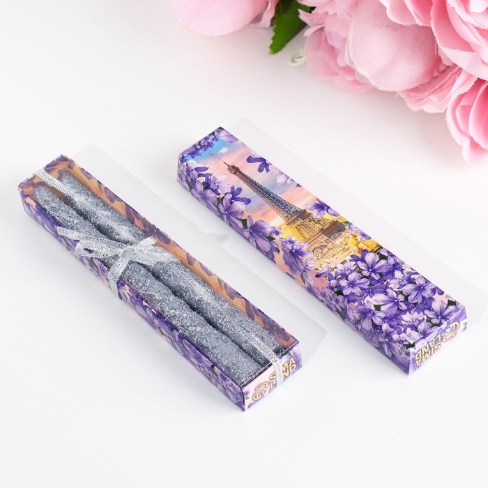 Набор свечей витых, 1,5х 15 см, 2 штуки, блестка, серебро