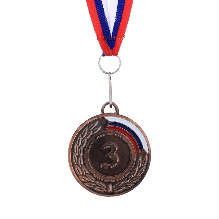 Медаль призовая 013, d= 5 см. 3 место, триколор. Цвет бронза. С лентой
