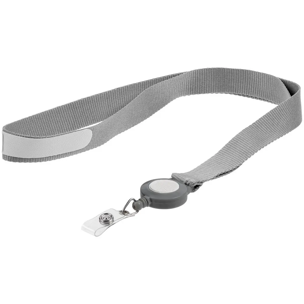Лента для бейджа с ретрактором Devon, серая с белым