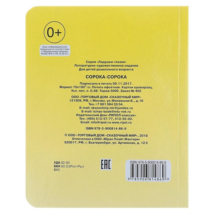 Книжка с глазками «Сорока-сорока», 130 x 160 мм