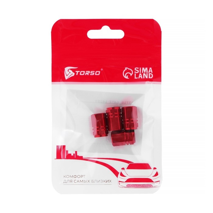 Колпачок на вентиль TORSO, красный, набор 4 шт