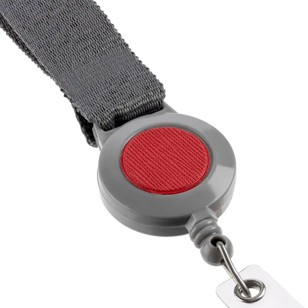 Чехол для пропуска из искусственного материала с пластиковым окошком, прикрепленный пластиковым клипом к ретрактору и ленте.
