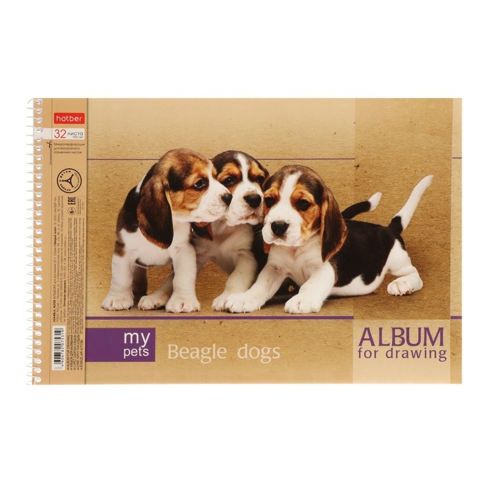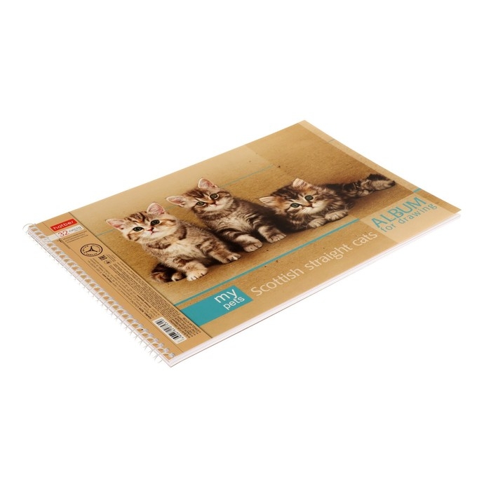 Альбом для рисования А4, 32 листа, на гребне, "Зверьё моё", обложка картон, блок 100 г/м², перфорация на отрыв, МИКС