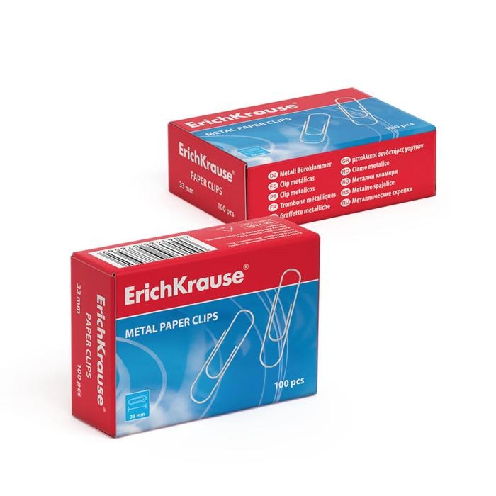 Скрепки канцелярские 33 мм, 100 штук, оцинкованные, ErichKrause, картонная упаковка