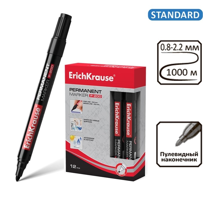 Маркер перманентный 0.8-2.2 мм, ErichKrause P-200, чёрный