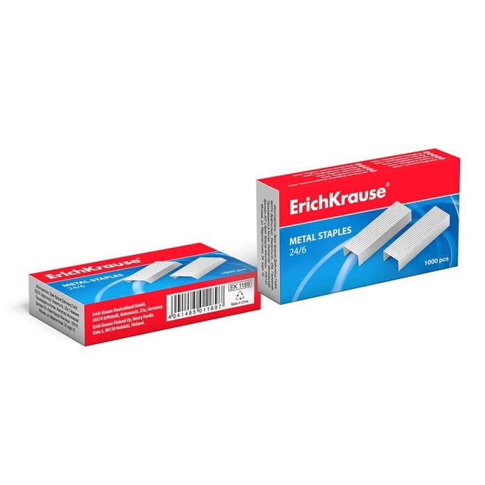 Скобы для степлера ErichKrause № 24/6, 1000 штук, заточенные с усиленной пробивной способностью