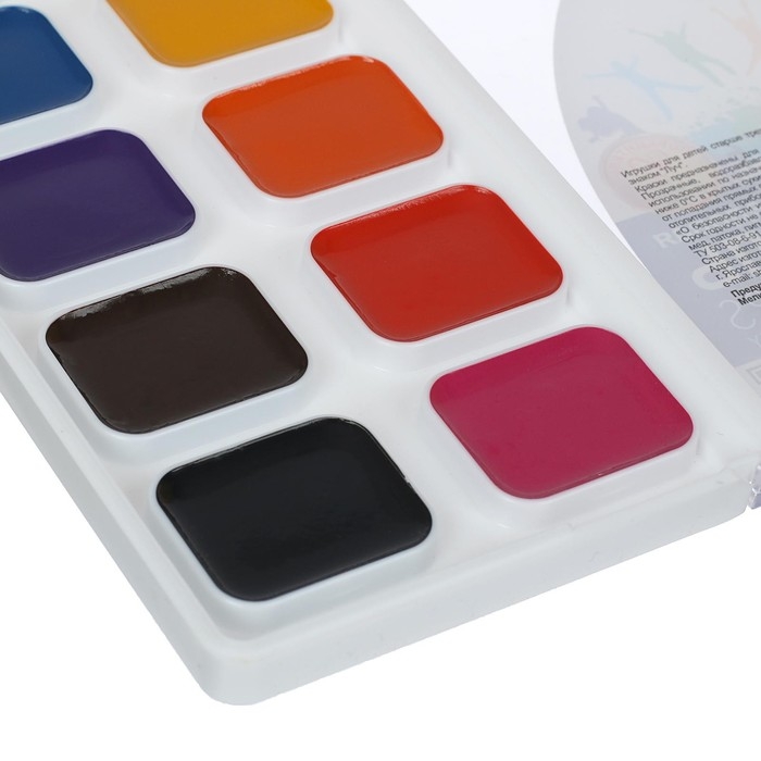 Краски акварельные, в кюветах, с кистью, 12 цветов