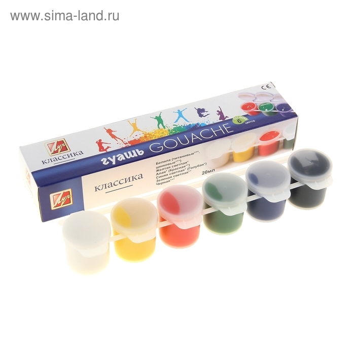 Гуашь 6 цветов х 20 мл "Классика", блок-тара