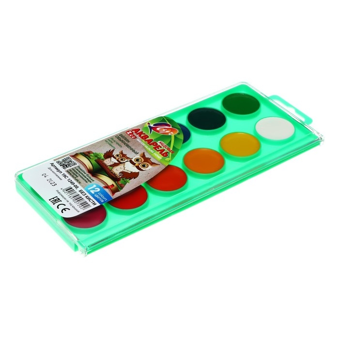 Акварельные краски медовые 12 цветов в картонной коробке, без кисти «1 сентября»