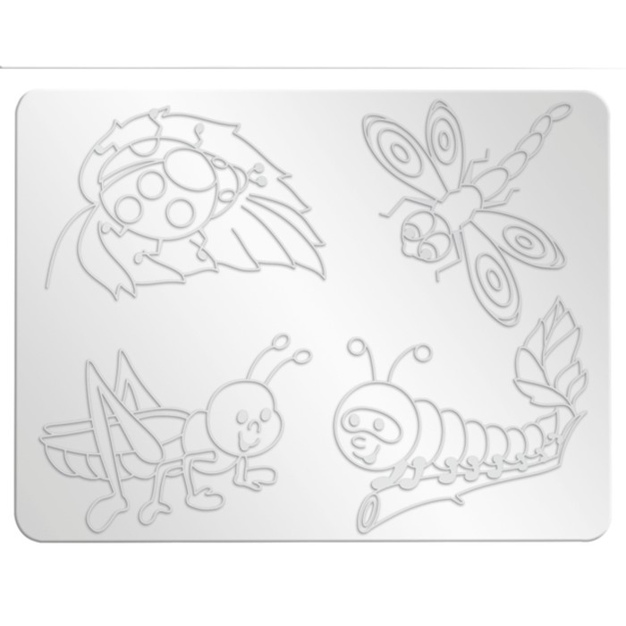 - Внешняя сторона поверхности доски гладкая, предназначена для работы с пластилином, глиной и другими материалами. На внутренней стороне находится рельефный трафарет, который можно использовать для нанесения рисунка на бумагу или лист картон;