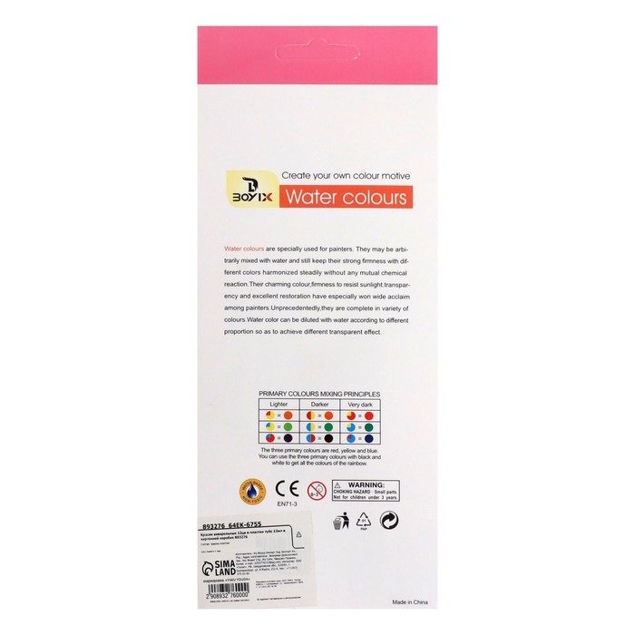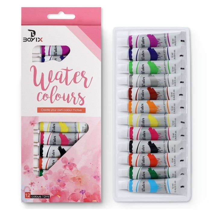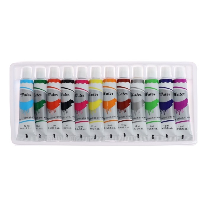 Краски акварельные 12 цветов, в пластиковой тубе, 12 мл
