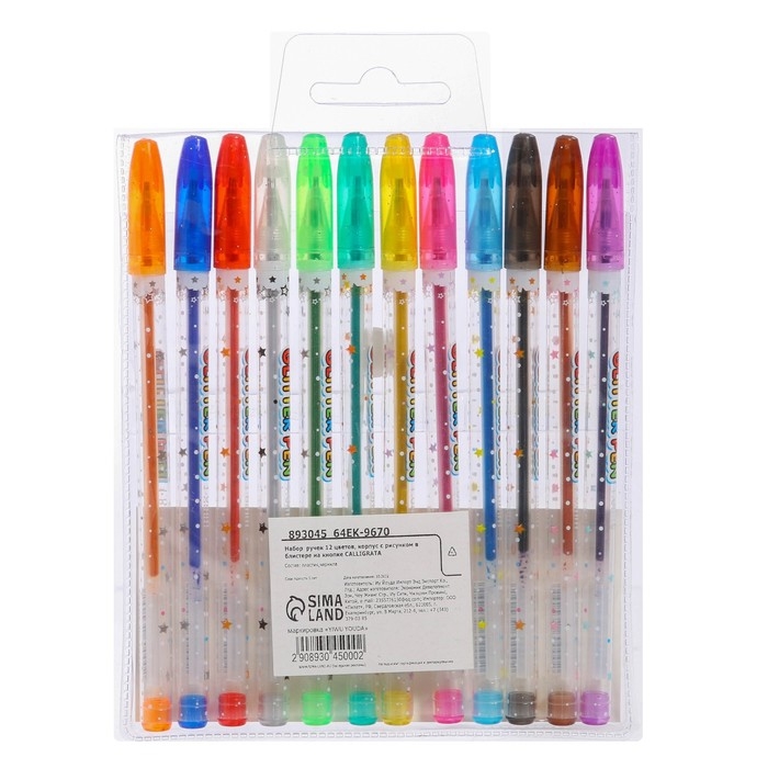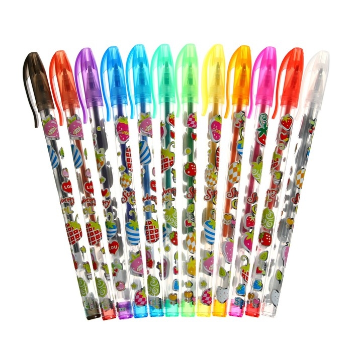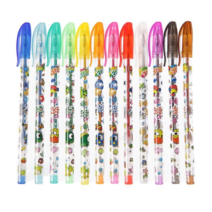 Набор гелевых ручек, 12 цветов, металлик, корпус с рисунком, в блистере на кнопке