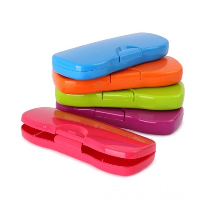 Пенал-футляр Calligrata "Школьный", 80 х 205 х 38 мм, полупрозрачный. пластиковый, микс