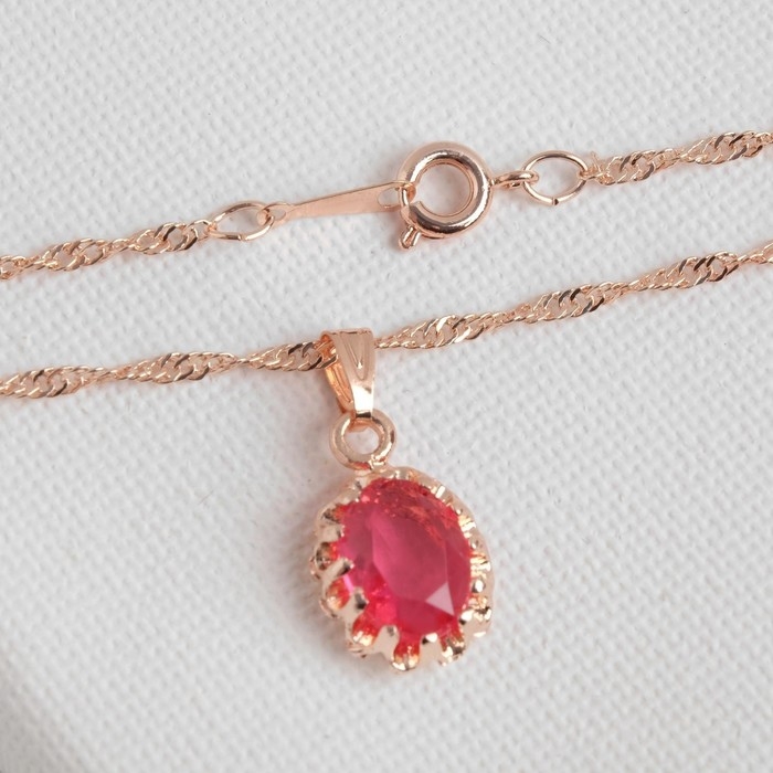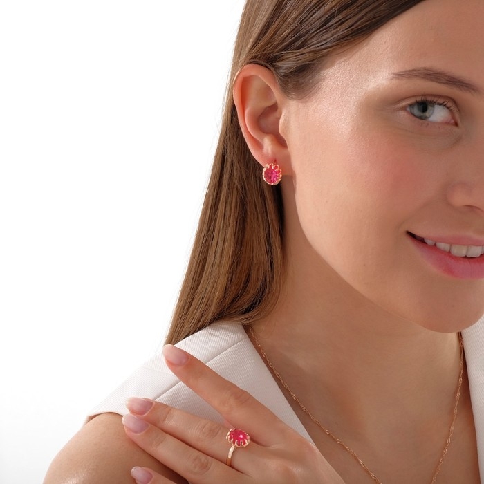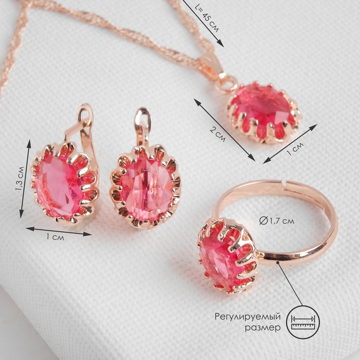 Гарнитур 3 предмета: серьги, кулон, кольцо безразмерное «Эдель» овал, цвет ярко-розовый в золоте, 45 см
