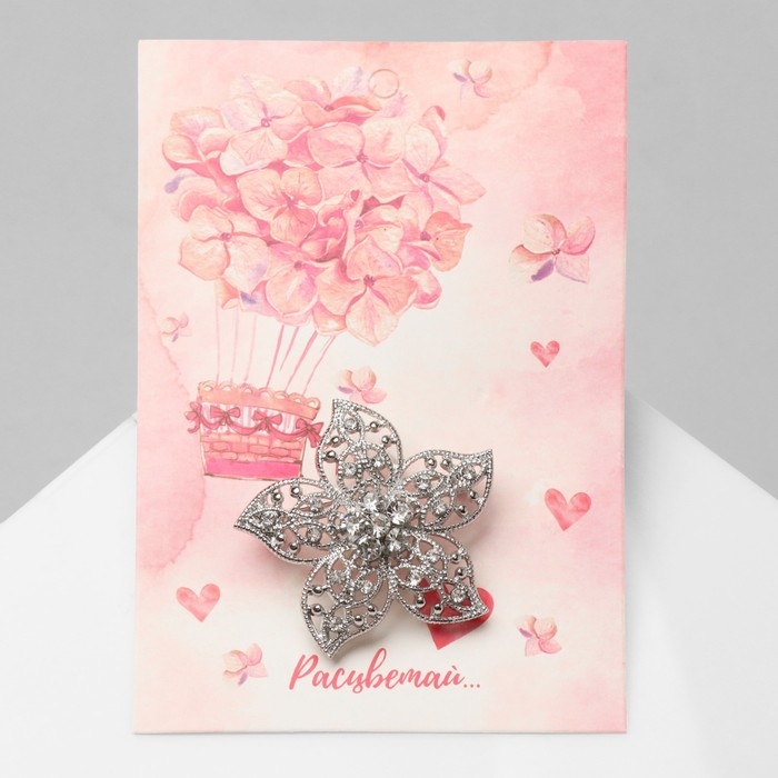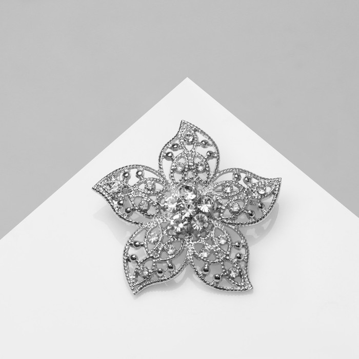 Брошь «Цветок» пятилистник, цвет белый в серебре