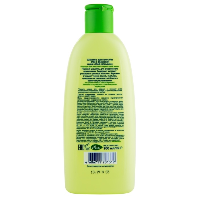 Шампунь для волос детский "МОЁ СОЛНЫШКО" гипоаллергенно, 200 мл